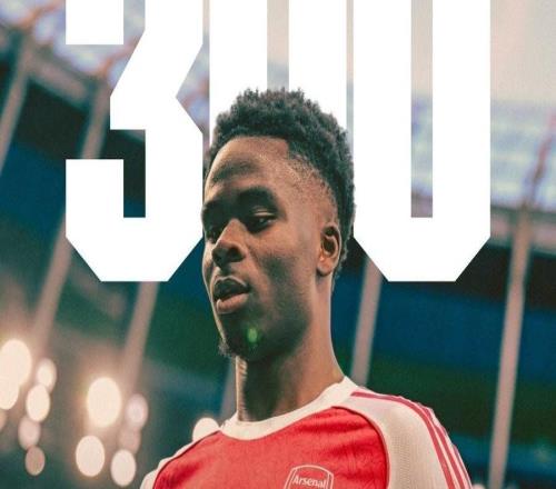 作為隊長首發(fā)出戰(zhàn),薩卡迎來阿森納一隊生涯第300場里程碑